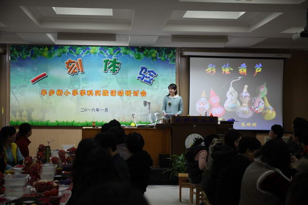 为有效落实“各学科平均应有不低于10%的学时用于开设学科实践活动课程”这一要求,我校王东清校长多次带领教学干部与学科组长、骨干老师、青年教师等就“如何开展富有学校特色的主题式学科实践活动”这个话题召开了聊天式调研会、座谈会以及全校教师参与的“互动式研讨活动”,广泛听取老师们的积极建议,并于2016年1月21日开展了有专家、集团校领导、全校教师参与的体验性实践活动——制作葫芦灯和彩绘葫芦。