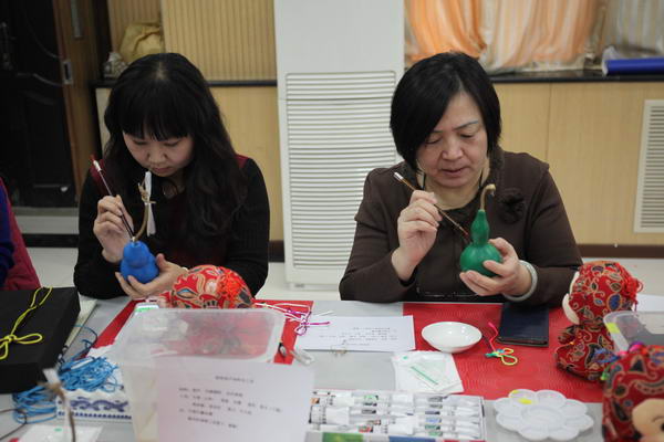活动中,不管是专家、集团校领导,还是学校的老师们,在主讲老师及学生助教的帮助、指导下都通过亲自动手完成了一个葫芦作品。